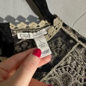 Y2K Vintage Top Women Large Black Lace Sheer Gold Metallic Crochet Glam Art Deco