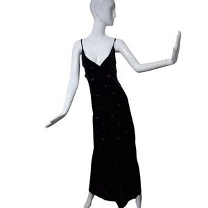 Y2K Vintage Velvet Women size XL Floral Embroidered Whimsigoth Fairy Maxi Dress