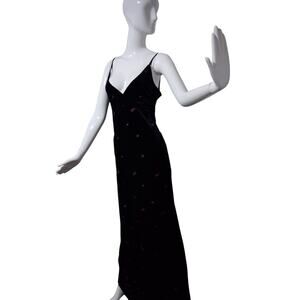 Y2K Vintage Velvet Women size XL Floral Embroidered Whimsigoth Fairy Maxi Dress Vampy Witchy Dark Romantic