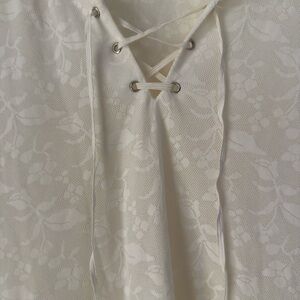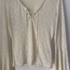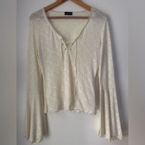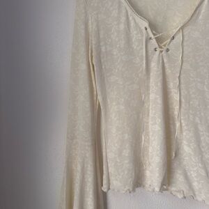 Y2K Vintage Wet Seal Sheer Floral Lace Top Size L Ivory Tan Long Sleeves