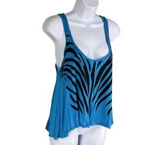Y2K Vintage Wet Seal Womens M Blue Zebra Print Tank Top Made In USA Flowy Beachy