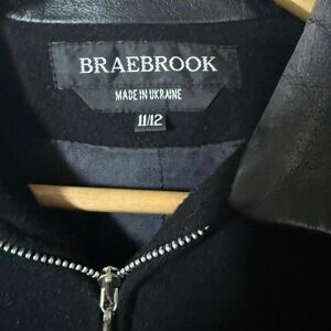vintage wool jacket, Braebrook made in Ukraine, black faux leather trim coat, 90s minimalist jacket, women's medium large jacket, European vintage outerwear