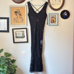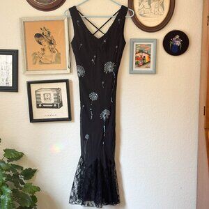 Y2K Vintage black Dress with Sequin Dandelions
