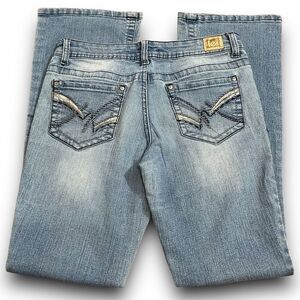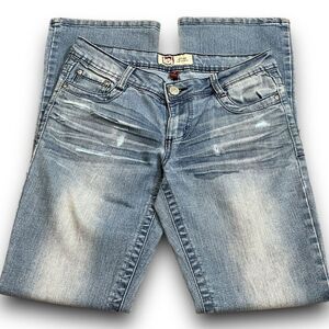 Y2K Vintage Distressed l.e.i. Light Wash Ashley Low Rise Boot Cut Jeans Size 7 Regular