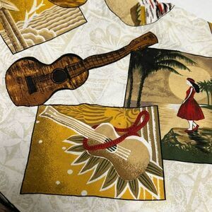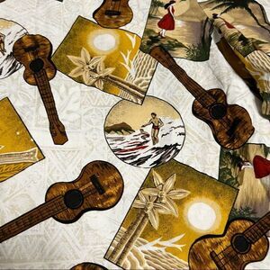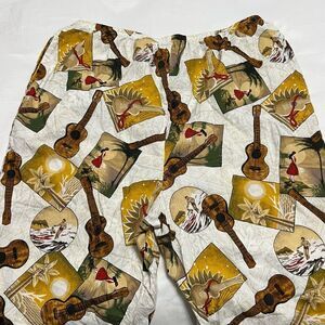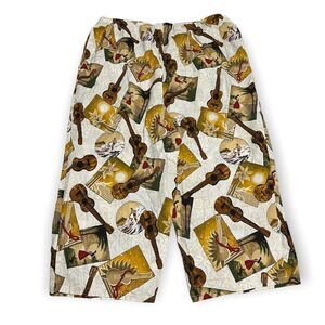 Y2K Vintage Hilo Hattie Cotton Capri Pants Wide Leg Surfer Ukulele Beach Print