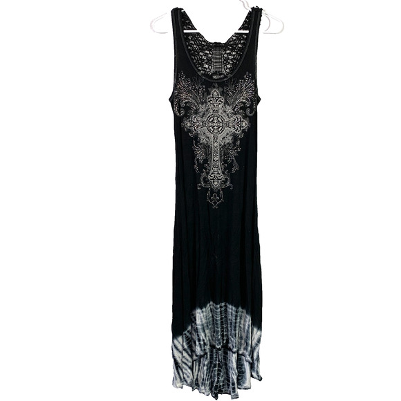 Y2K Vocal Black White Tie Dye Bling Crochet Maxi Goth Cross Dress Chest 28" Lg