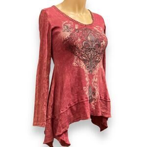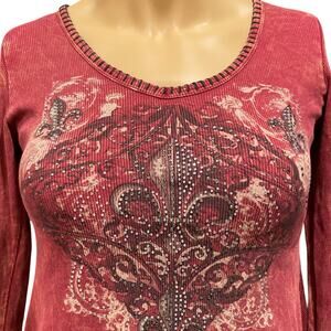 Y2K Vocal Futuristic Maroon Rhinestone Tunic Long Sleeve Top Size Small