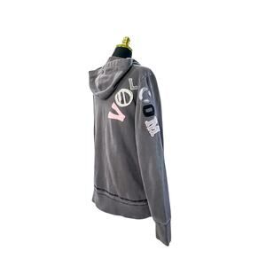 Y2K Volcom Grey Hoodie with Patch Logos - Size L