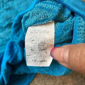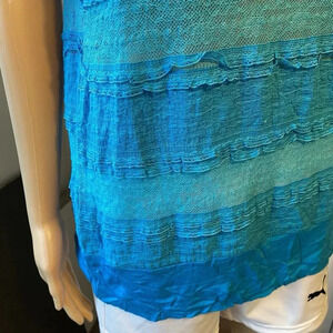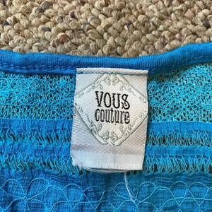 Y2K Vous Couture Mesh Lace Ruffle Blouse Top Women’s L Stretch Casual Blue Fairy