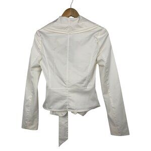 Y2K Vtg BCBGMAXAZRIA XS White Tie Waist Blouse RH10461 GUC Long Sleeve