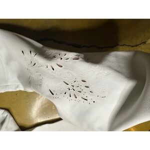 Y2K Vtg Express Design Studio Leather Pants White Floral Cutout Editor Size 8