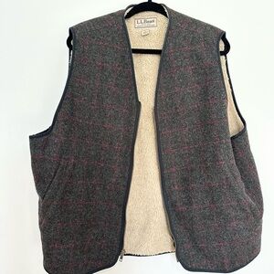 Y2K Vtg MADE IN USA L.L. Bean Wool Plaid Vest, Sherpa Fleece Lined, Size XL men