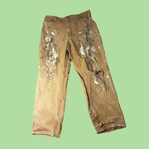 Y2K WORKWEAR LOOSE BAGGY CARHARTT LEATHER TAN PAINT DISTRESSED PANTS SIZE 36x32