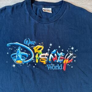 Y2K Walt Disney World Shirt Stitch Goofy Mickey Script Adult XXL Blue Short Slve