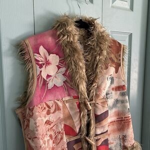 Y2K Weavz Womens Faux Suede Fur Lined Vest Medium Button Front Retro Hippie Boho