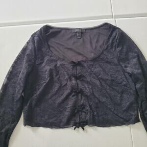 Y2K Whimsigoth Goth Shirt Womens 1X Lace Bow Front Long Sleeve Cropped Cardigan