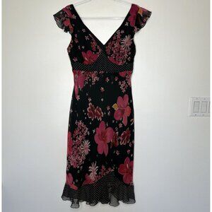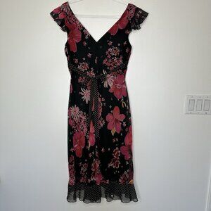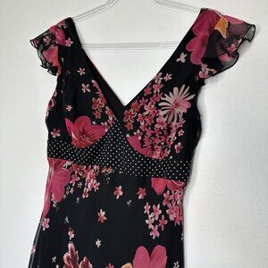 Y2K Whimsigoth New York & Co Flutter Sleeve Dress Size 10 Black Floral