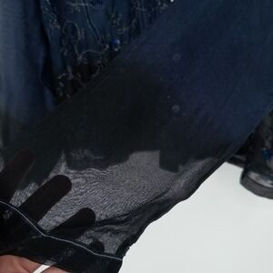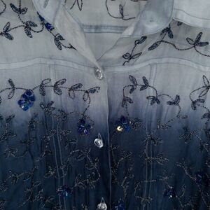 Y2K Whimsigoth Sheer Silk Top L Sequin Dark Fairy Grunge Embroidered Ombre Blue