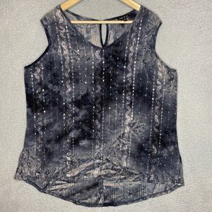 Y2K Whimsigoth Sz XL Stretch Dark Dyed Embellished Sequin Ribbon Blouse Tank Top