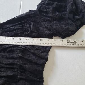 Y2K Whimsigoth Witch Goth Girl Top XL Black Puff Sleeve Lace Crop Ruched Corset1