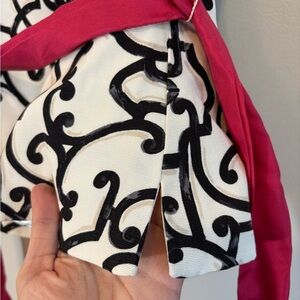 Y2K White Black Lace Corset Strapless with Pink Sash Patterned Top - Size Medium