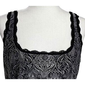 Y2K White House Black Market Whimsigoth Silver & Black Lace Trim Tank Top Corset