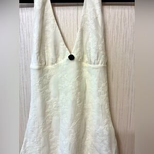 Y2K White Lace Halter Mini Dress Coquette Backless Crochet Summer Party Dress xs