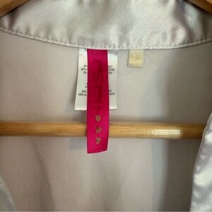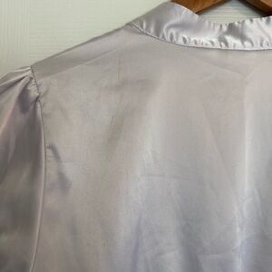 Y2K White Satin Blouse with Puff Sleeve Detail Ruffles Medium