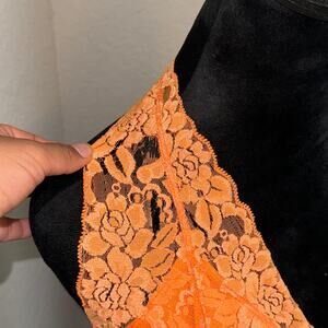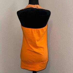 Y2K Wildcat Halter Dress Neon Orange Women's Size M/L Lace Trim Boho Preppy