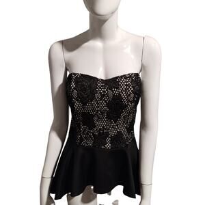 Y2K Windsor Women's size L Fish Net Sequin Floral Hi-Low Whimsigoth Peplum Top Rare Fairygoth Vampire Emo kawaii Indie Sleaze flirty Festival Feminine Party Cocktail Sexy Retro Open knit Mesh Overlay