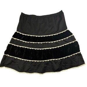 Y2K Witchy Black Velvet Satin Lace Tiered Skirt Dark Gothic Fairy Whimsigoth L