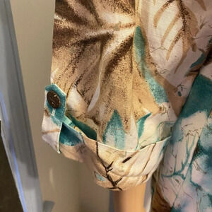 Y2K Womens 16 Linen Blend Chore Shirt Jacket Button Up Roll tap 4Pockets Floral