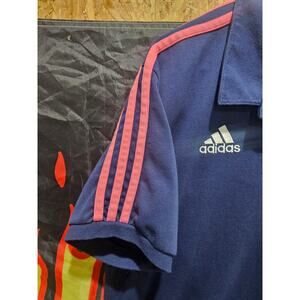 Y2K Women’s Adidas Colorblock Real Madrid Polo – Size L (30x22) | Navy w/ Pink 3-Stripes | Sporty Streetwear Vibes