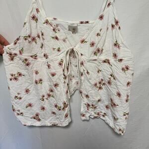 Y2K Womens Babydoll Cropped Cami Tie In Front Tank Top XXL Preppy Floral 90s