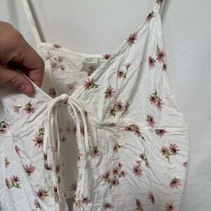 Y2K Womens Babydoll Tie In Front Tank Top Cami XXL Cropped Preppy Floral 90s