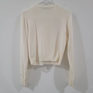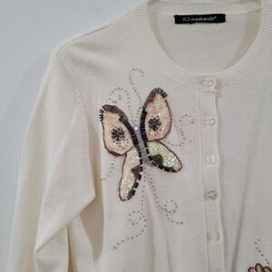 Y2K Womens Cardigan Sweater Size Medium Cream Butterfly Sequin Beaded Retro 90S