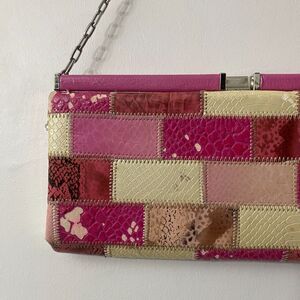 Y2K Womens Clutch Handbag Patchwork Bimbo Croc Snakeskin Boho Mcbling Pink