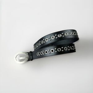 Add some sparkle to your outfit with this Y2K Women's Guess Black Leather Studded Belt. The belt features a solid pattern and is made of high-quality leather material. It has a normal belt width and is adjustable to fit any size. The buckle is specially designed with studded accents, giving it a unique and trendy look.