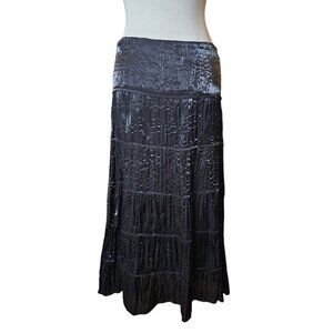 Y2K Womens Maxi Skirt Black Tiered Crinkle Irresdescent Whimsigoth Size M 8 10