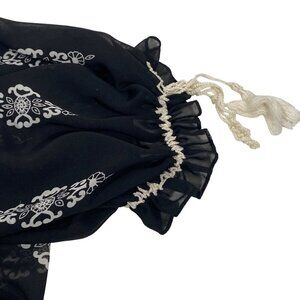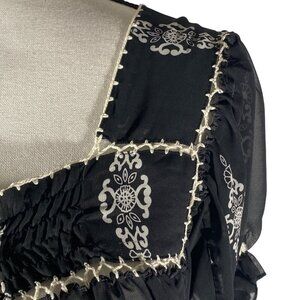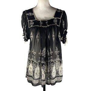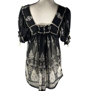 Y2K Womens Sheer Peasant Blouse top puff sleeve square neck baby doll Bohemian M