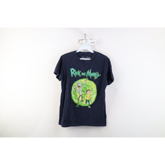 Y2K Womens Small Distressed Rick and Morty Cartoon Short Sleeve T-Shirt Blue