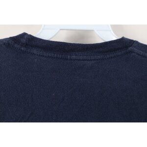 Hole front bottom, front left armpit, inner collar. Blemishes front, back, shoulders. Collar, shoulders stretched. Collar discolored. Graphics cracking/faded, color faded. Pilling