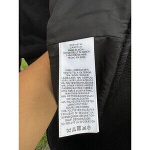 This Y2K 2002 Women's True Religion Classic Horseshoe Varsity Jacket in size L is a stylish and vintage piece that exudes a retro vibe. Made from a blend of wool, acrylic, and polyester, this short jacket features long sleeves, a button and snap closure, and comes in a striking black and amethyst colorway. The polyester lining and pockets add practicality to this designer jacket, making it perfect for casual occasions and adding a touch of bohemian flair to any outfit.