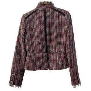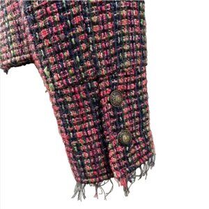 Y2K Womens Tweed Multicolor Boucle Blazer Jacket Military Style Navy Pink XS