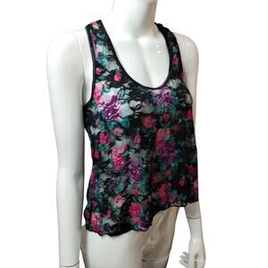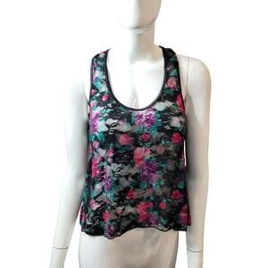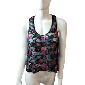 Y2K Womens size XS Floral Lace Mesh Colorful Grunge Whimsigoth Stretch Tank Top