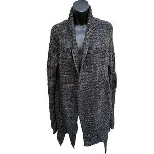 Y2K Wool Express High Lo Hem Asymmetric Drape Open Cardigan Charcoal Women’s XL