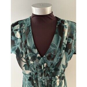 Y2K Worthington Babydoll Top Large Green Floral Forest Fairy Boho Peasant Fall