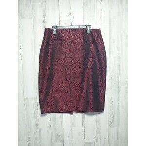 Y2K Worthington Women Skirt Size 16 Red Paisley Demask Classic Straight Pencil