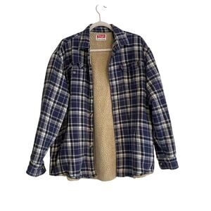 Y2K Wrangler Blue White Plaid Cotton Sherpa Lined Button Down Shacket Sz Large