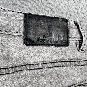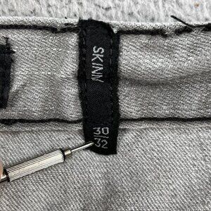 Y2K XXX Rude Jeans Mens 30x32 Gray Skinny Button Fly Denim